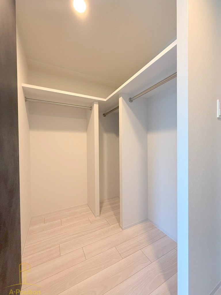 広々としたウォークインクローゼットは、衣類やバッグ、季節家電までしっかり収納できる頼もしい空間。