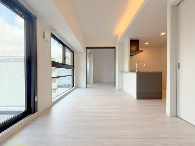 大きな窓から差し込む自然光が、ホワイトフローリングに反射してお部屋全体を明るく演出。