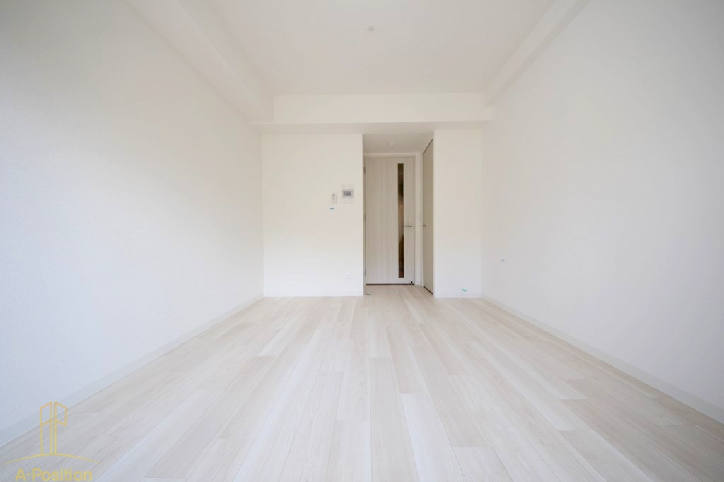白を基調としたフローリングと壁が、室内をとても明るく見せてくれます。大きな窓から自然光がたっぷり入り、実際の広さ以上に開放感を感じられるのが魅力です。
