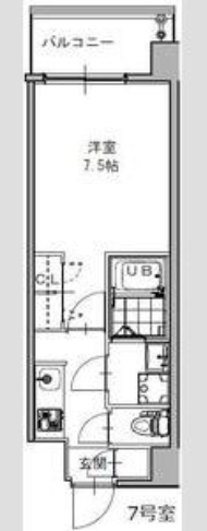 専有面積24.63㎡・洋室7.5帖と、一人暮らしにちょうどいい広さをしっかり確保した間取り。